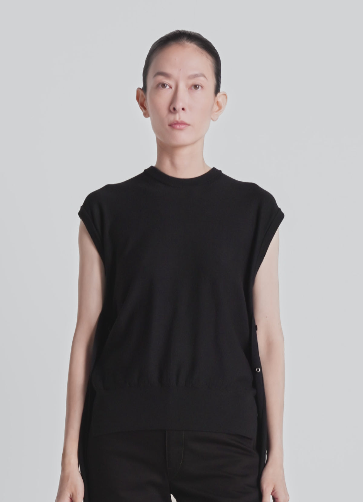 Ärmelloses, geknöpftes Top aus Merinowollmischung