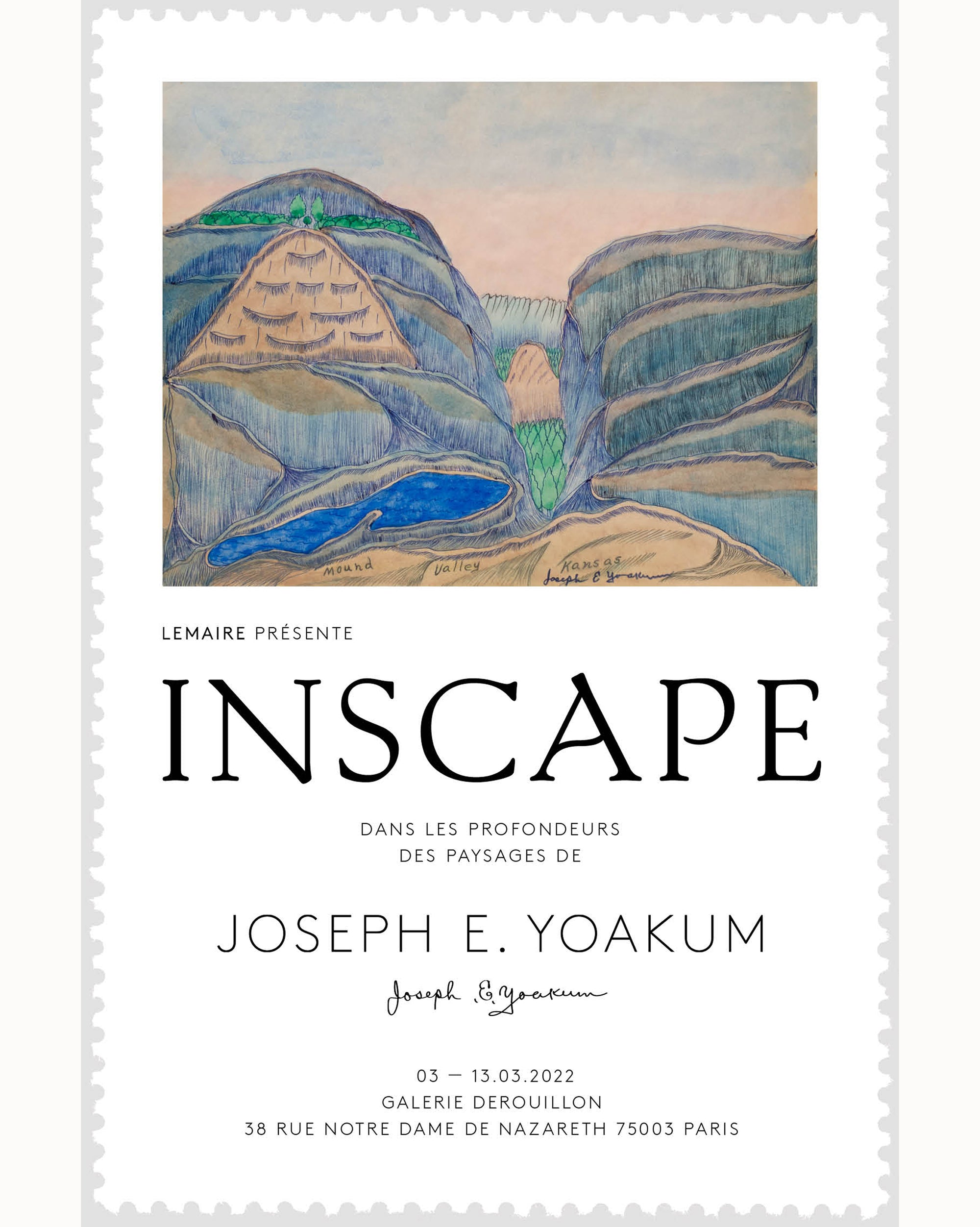 Réalisé par LEMAIRE à l’occasion de la collection capsule Printemps/Été 2022 en hommage à Joseph E. Yoakum, Inscape est soutenu par Anna Furney et la galerie Venus over Manhattan.