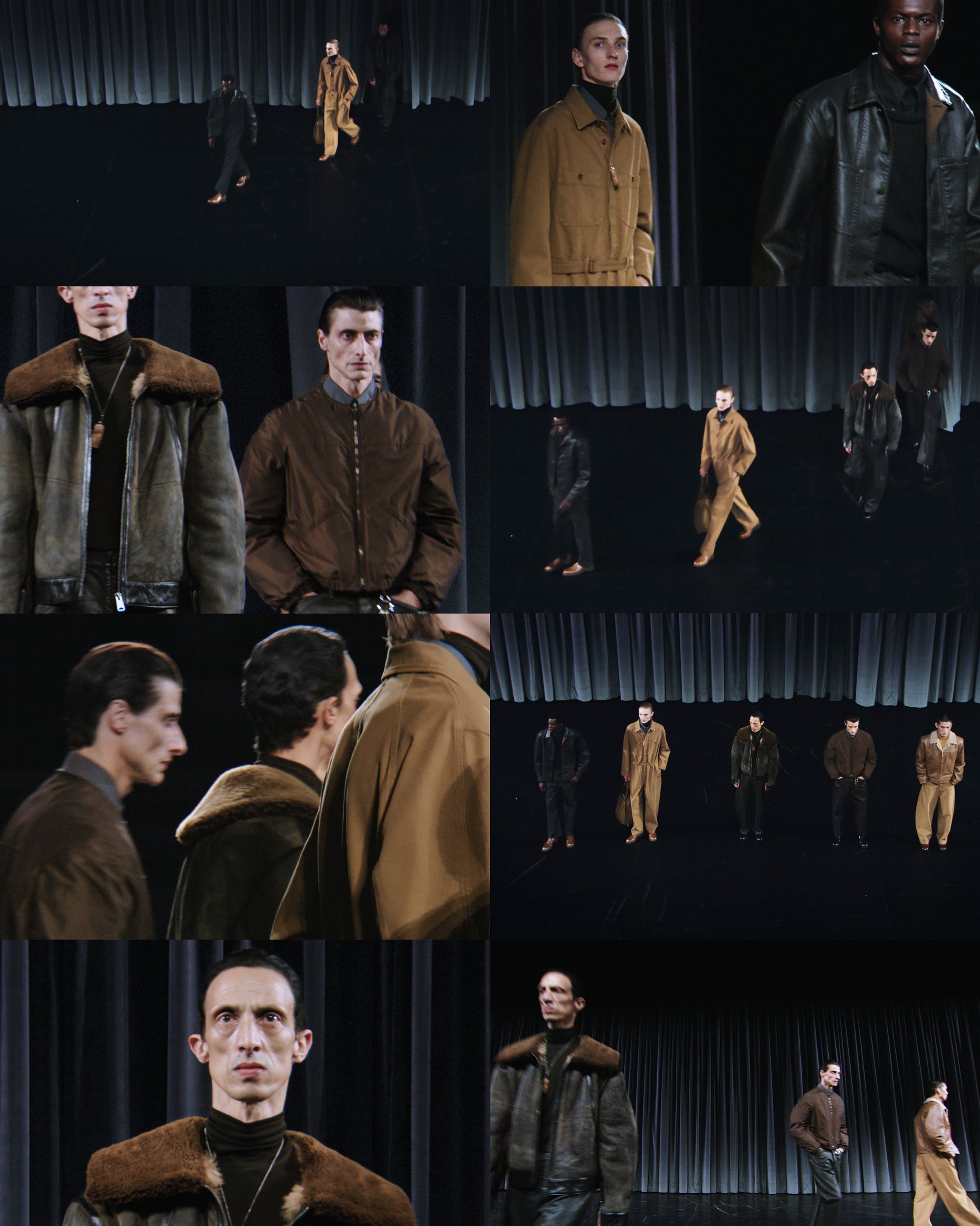 LEMAIRE presents mine eyes、ナタリー・ベアスとのコラボレーション。このプレゼンテーションは新たなランウェイショーを提案する。劇場へと踏み込み、空間を開き、時間を超越する。ベアスの作品『ベルベット』に着想を得た動く絵画は、彼女の言葉を借りれば「色が語る布の世界」へと広がっていく。レメアはその世界にシルエットと色彩で存在感を示し、ニュアンスと質感、折り目と模様が次々と現れては隠れる、微妙な変化の劇場を創り出す。