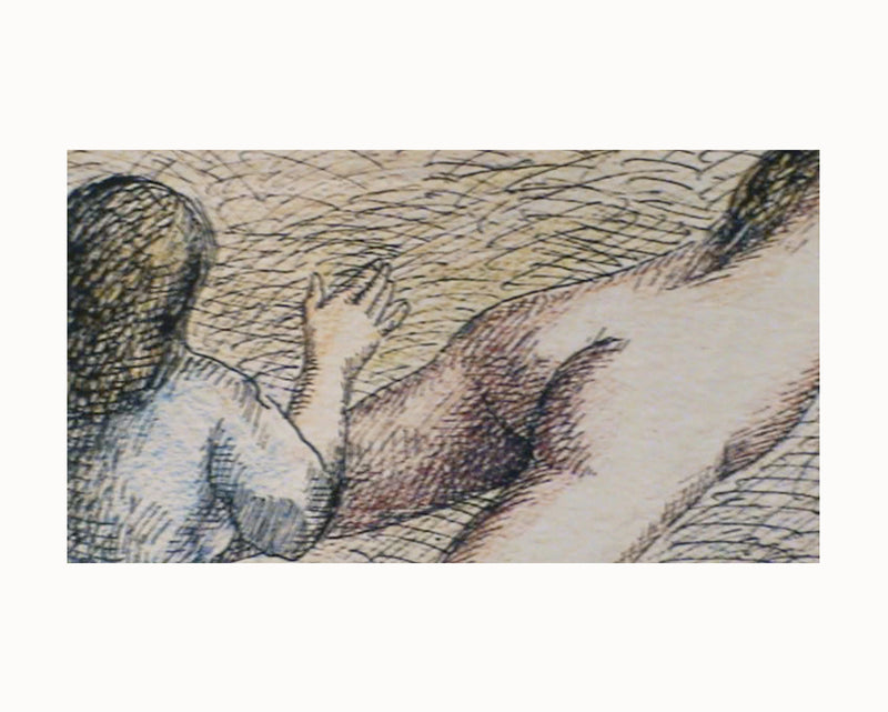 ローランド・トポールの明晰夢の世界——鋭く、優しく、ブラックユーモアを帯びた——が作品群に浸透している。彼のイラストレーションは自由で表現豊かなテキスタイルの文法へと翻訳される。鉛筆の線が物質となる:スケッチは棘のあるレリーフや乾いた絹糸へと変容し、まるでキャンバスから飛び出して三次元へ入り込むキャラクターのようだ。