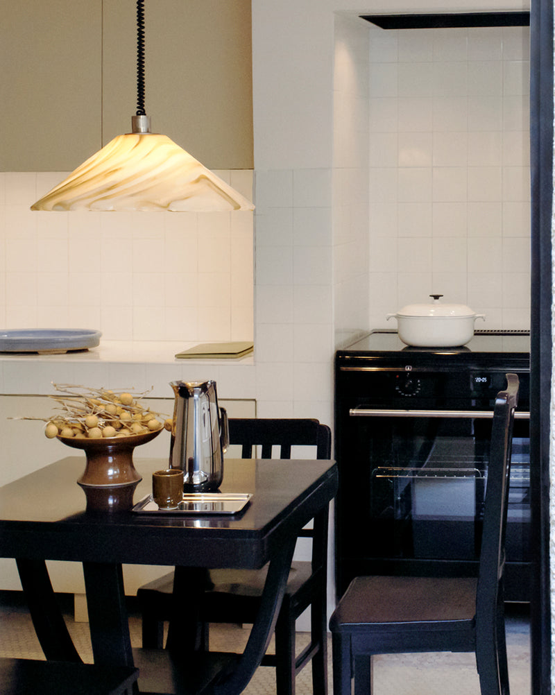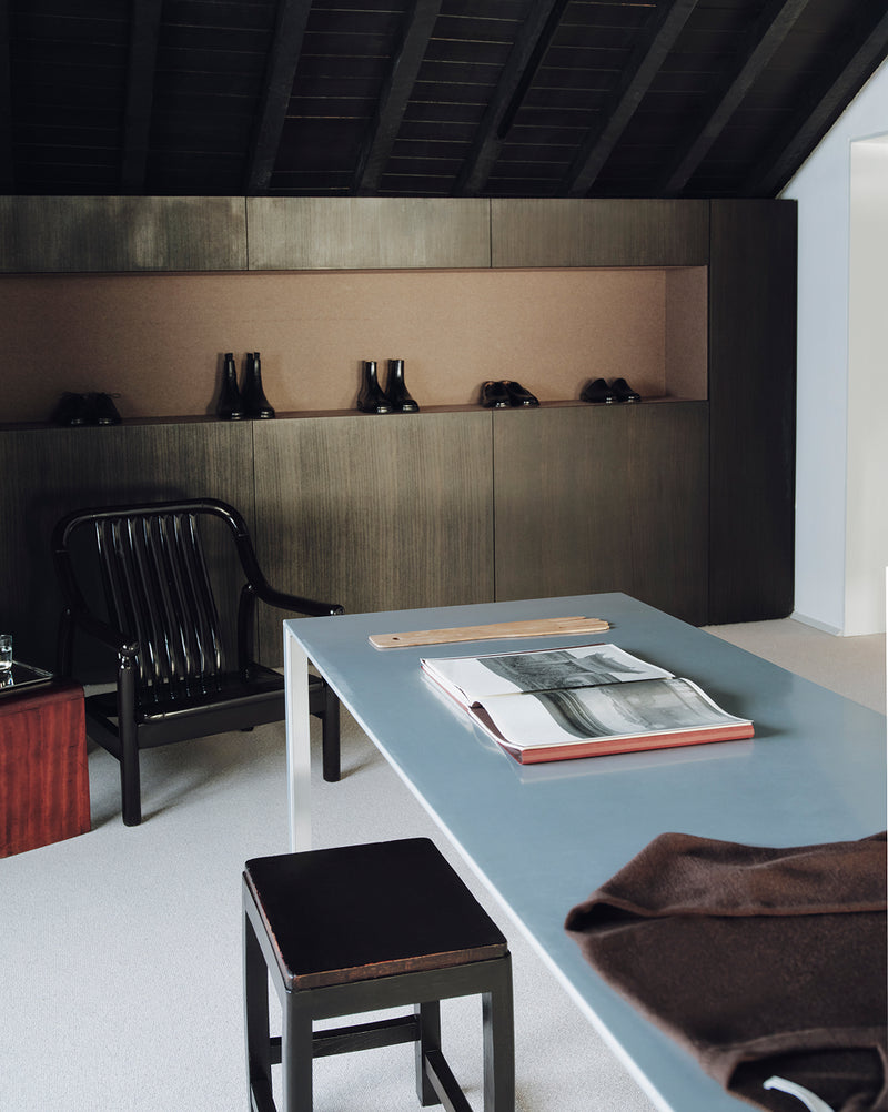 Furniture from the Bossche School, the Viennese Secession, Enzo Mari, and Carla Venosta sits alongside pieces sourced from local vintage markets and refurbished by a Shanghainese cabinetmaker. Ceramicist Li Qing has crafted a series of pieces for the store, displayed in the kitchen and intended for daily use.