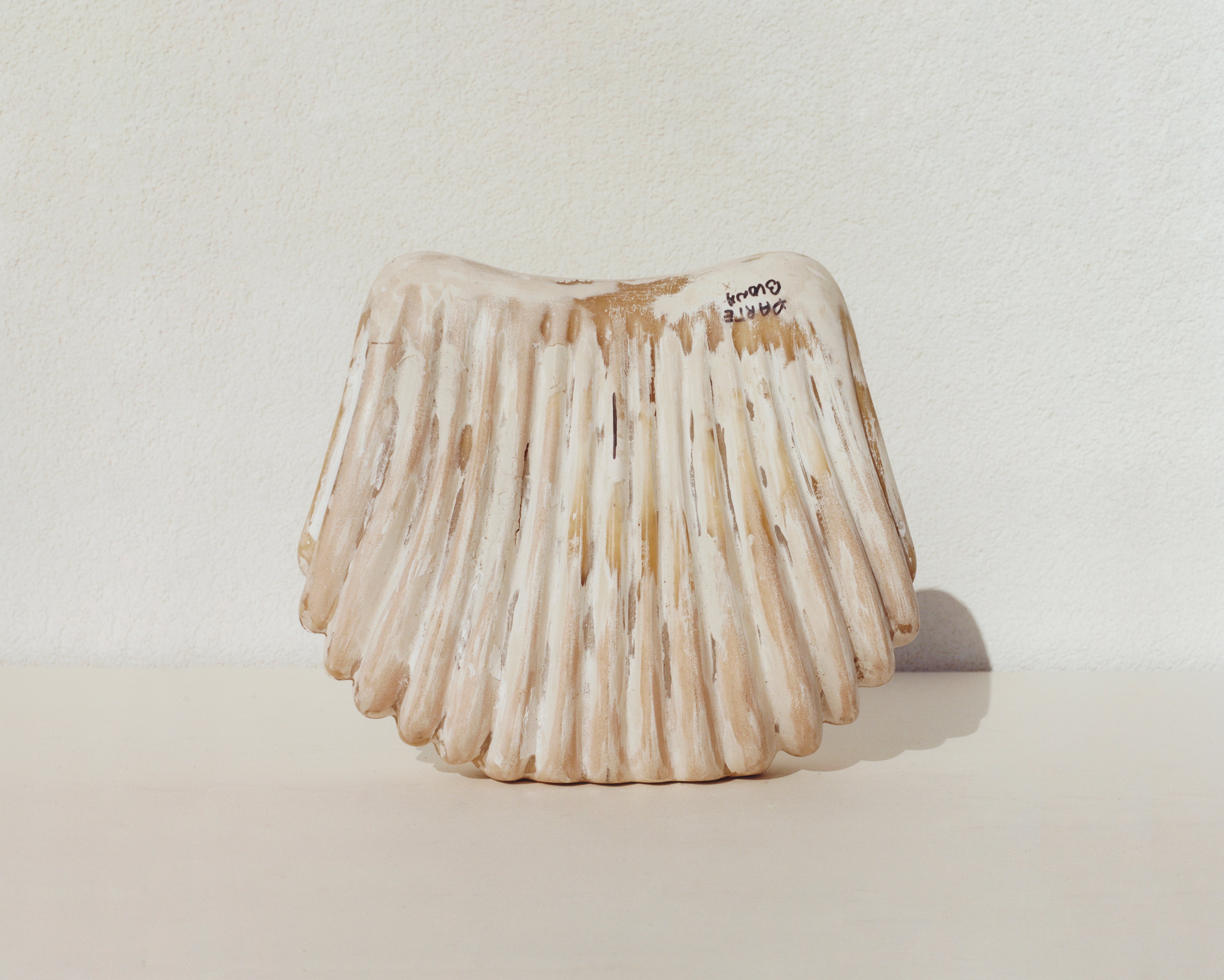 Peñafiel worked closely with Tuscan artisans to hone the innovative techniques required to produce an organic shape molded entirely in leather. Each irregularity in the artist’s original resin mold has been faithfully reproduced, from the uneven curves to the asymmetry and interrupted lines. The leather is formed in a metal press engraved with the shell shape of the original mold.
